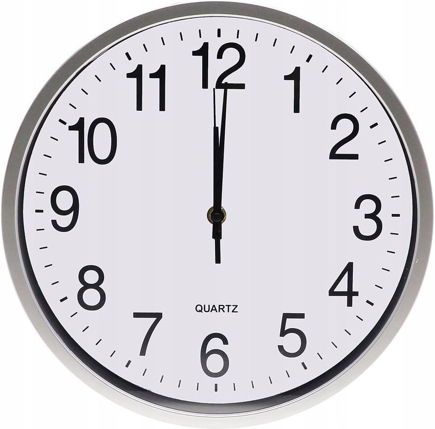 ZEGAR ŚCIENNY 25cm Cichy Płynna Praca DUŻE Cyfry SREBRNY 2315 Myślenice