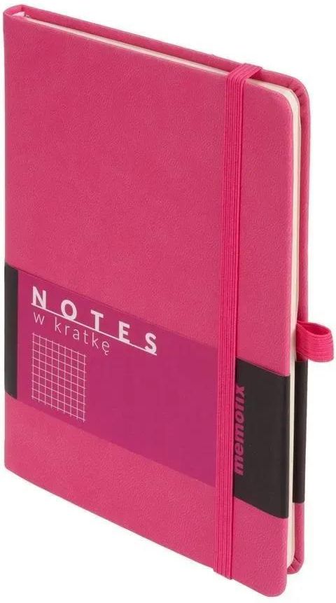 Notes Memofix B6 kratka różowy gramatura: 70 g, liczba stron: 192, okładka: twarda, materiał: skóra ekologiczna, wymiary: 125x76 mm, pionowa gumka zamykająca, gumka na długopis, zaokrąglone rogi, wyklejka w kolorze ecru papieru , wnętrze: kratka, koperta na luźne karteczki, wstążka w kolorze …