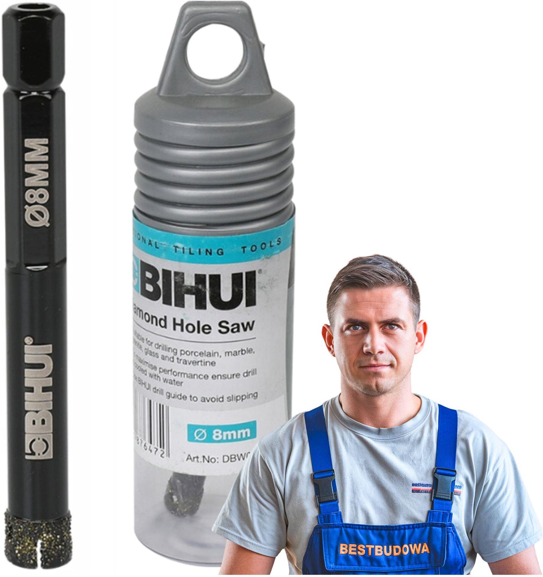 BIHUI Otwornica Diamentowa HEX 8mm Precyzyjna diamentowa otwornica do wiercenia otworów w twardych materiałach. Średnica: 8 mm Trzpień: 6,25mm Trzpień: Heksagonalny Materiał: Wysokiej jakości stal Najważniejsze zalety Precyzyjne wiercenie: Otwornica zapewnia dokładne i równe otwory. Trwałość: Solidna konstrukcja i wysokiej jakości materiał gwarantują długą żywotność. Wszechstronność: Nadaje się do wiercenia w różnych materiałach, takich jak porcelana, kamionka, marmur, granit, trawertyn i szkło. Łatwość użytkowania: Intuicyjna obsługa i wygodny uchwyt zapewniają komfort pracy. Bezpieczeństwo: Otwornica jest zaprojektowana z myślą o bezpieczeństwu użytkownika. Właściwości produktu Galwanizowana krawędź tnąca: Zapewnia wysoką odporność na zużycie i korozję. Diamentowe ziarna: Gwarantują szybkie i skuteczne wiercenie. Możliwość wiercenia na sucho lub na mokro: Dostosowuje się do różnych warunków pracy. Kompatybilność z wiertarkami udarowymi: Można używać z większością popularnych narzędzi. Zastosowanie produktu Remonty i renowacje: Idealna do wiercenia otworów pod armatury łazienkowe, oświetlenie i inne elementy. Projekty DIY: Przydatna do tworzenia mozaik, witraży i innych projektów artystycznych. Przemysł budowlany: Służy do wiercenia otworów w kamieniu naturalnym i innych materiałach budowlanych. Hobby i zainteresowania: Może być używana przez majsterkowiczów i kolekcjonerów. Usługi profesjonalne: Niezbędna dla glazurników, kamieniarzy i innych specjalistów.