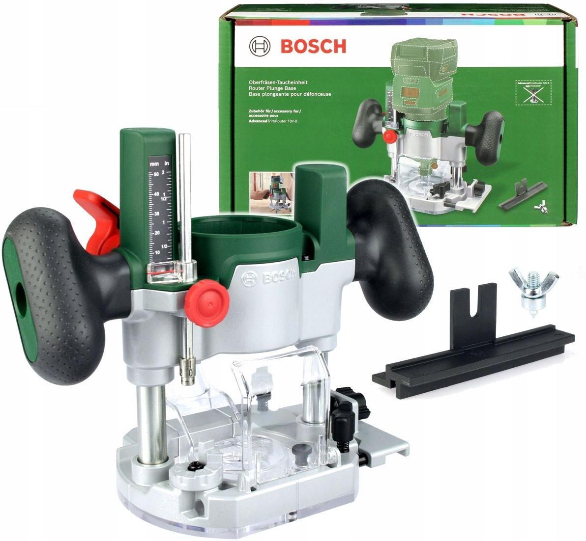 Bosch Home and Garden #####Oberfräsen-Taucheinheit 1600A02RD7 AdvancedTrimRouter Plunge Base Frezarka zanurzeniowa kompatybilna z AdvancedTrimRouter 18V-8 Łatwa w użyciu regulacja głębokości dzięki sprytnemu 7-stopniowemu ogranicznikowi rewolweru, który pozwala na łatwą regulację głębokości wszystkich popularnych głębokości frezowania Kompatybilność z prowadzeniem równoległym i szynami prowadzącymi BOSCH do frezowania prostych rowków Praca bez zapylenia i dobra widoczność obrabianego przedmiotu dzięki adapterowi odsysającemu i osłonie przeciwpyłowej Nieograniczona swoboda – Kompatybilny ze wszystkimi urządzeniami z serii 18V POWER FOR ALL ALLIANCE Łatwa w użyciu regulacja głębokości umożliwia bezproblemową regulację głębokości wszystkich popularnych głębokości frezowania dzięki sprytnemu 7-krotnemu ogranicznikowi rewolweru. Podstawa wgłębna jest kompatybilna z prowadnicą równoległą i szynami prowadzącymi BOSCH do prostego frezowania rowków. Dzięki adapterowi odsysającemu i osłonie przeciwpyłowej możliwa jest praca przy niskim zapyleniu i dobra widoczność obrabianego przedmiotu. Co więcej, Router Plunge Base jest częścią zestawu 18V POWER FOR ALL ALLIANCE, składającego się z urządzeń wiodących marek. Akumulator, który nie wchodzi w zakres dostawy, jest kompatybilny ze wszystkimi produktami 18V POWER FOR ALL ALLIANCE i dlatego można go używać do wszystkiego, od ogrodnictwa po sprzątanie i wymagające prace związane z majsterkowaniem. Opis tego produktu został przetłumaczony automatycznie. Technical specifications: Długość produktu: 256 mm · Szerokość produktu: 120 mm · Waga: 1300 g · Wykonanie (Bosch): Bosch dla majsterkowiczów (zielony) · Wysokość produktu: 209 mm Package contents: 1 x podstawa do zanurzenia routera 1 x uchwyt prowadzący wraz z adapterem do szyny prowadzącej 1 x adapter przeciwpyłowy (podstawa zanurzeniowa). 1 x trzpień centrujący 1 x opakowanie System requirements: ZASILANIE 18V DLA WSZYSTKICH SOJUSZÓW
