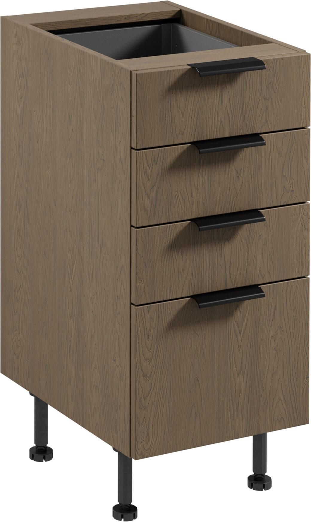 Elegancka szafka kuchenna Dolna 4S Sorento D40S4 w kolorze Baltic Storm łączy funkcjonalność z nowoczesnym designem. Cztery praktyczne szuflady z cichym domykaniem oraz regulowane nóżki zapewniają wygodę i stabilność. Idealna do każdej kuchni!