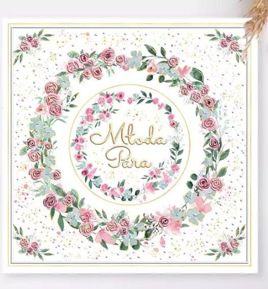 Karnet kwadratowy ślubny, gipsówka Karnet został wydrukowany na wysokiej jakości papierze. Karnet uszlachetniono złotem i tłoczeniem. W zestawie jest kolorowa koperta.Wymiary: 15.0 x 15.0 cm Karnet został wydrukowany na wysokiej jakości papierze. Karnet uszlachetniono złotem i tłoczeniem. W zestawie jest kolorowa koperta.Wymiary: 15.0 x 15.0 cm