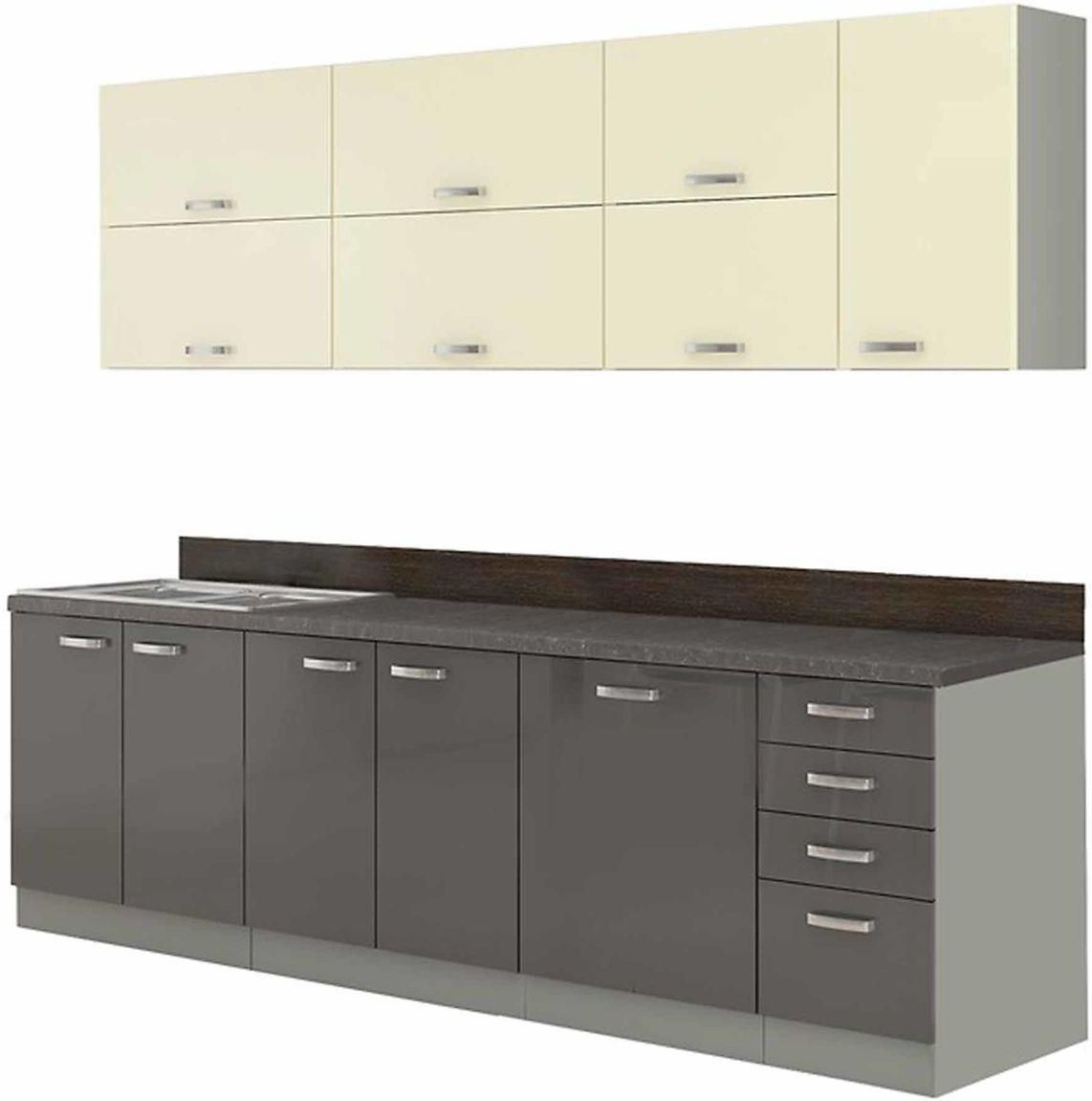 Zestaw mebli kuchennych Karmen Gray cechuje nowoczesny design i dobry gust. Stworzy wspaniałą kompozycję w nowoczesnym wnętrzu. Fronty w kuchni górne są z płyty MDF w kremowym połysku, dolne w szarym połysku dodatkowo zabezpieczone okleiną ABS.Korpus to płyta laminowana w kolorze szary. Zastosowano …