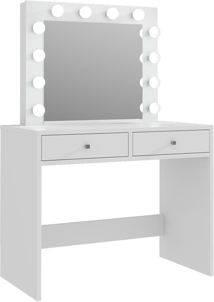 Toaletka PATRICIA 4 biały mat wykonana jest z płyty laminowanej oraz posiada dwanaście żarówek LED dla perfekcyjnego oświetlenia twarzy w trakcie makijażu.