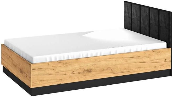 COLT 0902 Łóżko ze stelażem Łóżko o szerokości 126 cm wykonane z płyty laminowanej. Połączenie czerni z odcieniem dąb craft złoty, zagłówek wykonany z weluru w kolorze czarnym. Wymiary Szerokość (cm): 126 Wysokość (cm): 90 Głębokość (cm): 208 Dane techniczne Kolor: Dąb Craft Złoty, Czarny, Czarny Welur Materiał: płyta laminowana Waga (kg): 83