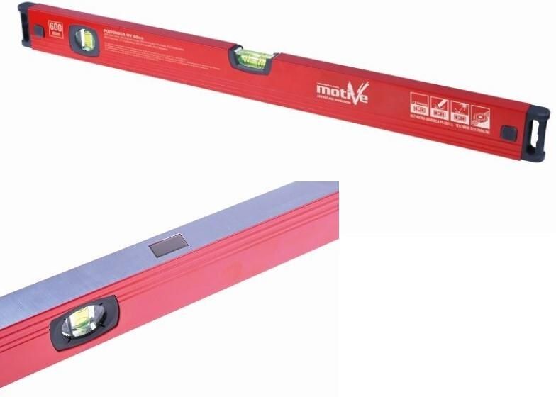 POZIOMICA HV 100cm Z MAGNESEM MOTIVE Solidna, aluminiowa konstrukcja. Antywstrząsowe, gumowe końcówki. Dwie widoczne libelle z dożywotnią gwarancją. Dokładność wskazań: 0,5 mm/m. Frezowana podstawa. Dodatkowe magnesy na spodzie poziomicy ułatwiające niekiedy pracę. Długość: 100cm