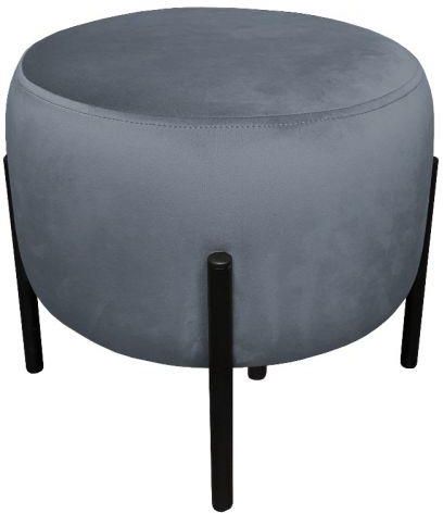 Pufa WILFRED BL VELVET ciemnoszara tapicerowana tkaniną aksamitną osadzona jest na metalowych nogach w kolorze czarnym.