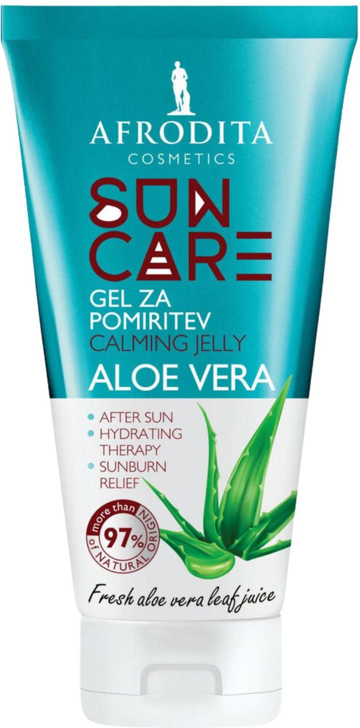 Afrodita Sun Care Aloe Vera Żel Po Opalaniu 150mlSkoncentrowany żel wyciskany ze świeżych liści ALOE VERA (Aloe barbadensis), który już po jednej aplikacji znacząco poprawia nawilżenie, stymuluje procesy regeneracji komórek skóry, działa kojąco, zapobiega łuszczeniu i nieprzyjemnemu ściągnięciu . Przynosi ulgę po ukąszeniach owadów. Zapewnia delikatną pielęgnację twarzy i ciała i jest odpowiedni dla każdego rodzaju skóry, szczególnie dla skóry suchej. Doskonały do ​​pielęgnacji po opalaniu oraz do stosowania po depilacji i goleniu.Właściwości:Długotrwałe nawilżenieŻel ze świeżych liści aloesuŁagodzi ukąszenia owadówProdukt wegański