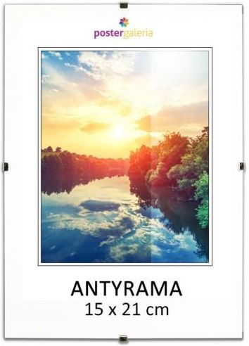 Antyrama szkło 15 x 21cm A5 antyrama do prezentowania zdjęć, rysunków, dyplomów wykonana ze szkła tył wykonany z płyty HDF o gr. 3 mm klipsy metalowe do mocowania możliwość zawieszenia w pionie lub w poziomie wymiar 15 x 21 cm