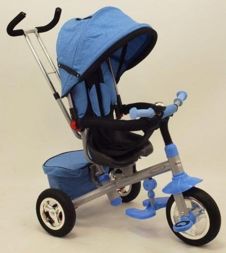 Baby mix Rowerek trójkołowy 3w1 TYPHOON 360° niebieski Rowerek TYPHOON zapewnia bezpieczeństwo i komort użytkowania. Ten niezwykły rowerek łączy w sobie cechy spacerówki i rowerka trójkołowego, który rośnie wraz z dzieckiem! Solidna stalowa konstrukcja zapewni bezpieczeństwo dziecka i gwarancję użytkowania przez wiele lat. Jest niezwykle prosty i łatwy w montażu. Z pewnością sprawi on wiele radości zarówno małym jak i starszym dzieciom. TYPHOON to bezpieczny i komfortowy środek transportu, który z powodzeniem może zastąpić spacerówkę. Obrotowe siedzisko umożliwia dowolne ustawienie pozycji dziecka przodem lub tyłem do kierunku jazdy. Wygodna rączka dla rodzica przeznaczona do sterowania rowerkiem pozwoli na pełną kontrolę nad kierunkiem i prędkością podczas nauki samodzielnej jazdy. Pojemny koszyk pozwoli zabrać ze sobą wszystkie skarby maluszka, oraz niezbędne akcesoria do pielęgnacji. Rowerek został wyposażony w poręcz ochronną zabezpieczającą dziecko przed wypadnięciem, trzypunktowe pasy bezpieczeństwa oraz podnóżki. Dla pełni komfortu zastosowano gumowe koła zapewniające odpowiednią przyczepność oraz cichą i komfortową jazdę na każdej nawierzchni. Szerokie i wygodne siedzisko zapewni wygodę podczas każdej podróży, a składana materiałowa budka uchroni dziecko przed nadmiarem słońca w upalne dni. TYPHOON w prosty sposób (składając podóżek) można przekształcić w klasyczny rowerek trójkołowy umożliwjając dziecku napędzanie rowerka kręcąc pedałami. CHARAKTERYSTYKA PRODUKTU: - Obrotowe siedzisko o 360 stopni - jazda przodem lub tyłem - Sterowanie rączką, regulowana wysokość rączki do pchania do 100cm - Funkcja wolnego koła (przekładnia zapadkowa) - Regulowane 3-poziomowe oparcie siedziska, dziecko może jechać w pozycji półleżącej lub leżącej, ustawione przodem do rodzica - Trzypunktowe pasy bezpieczeństwa - Regulacja odległości siedziska od kierownicy - Duża rozkładana materiałowa budka chroni przed niekorzystnymi warunkami atmosferycznymi - Okienko w budce - Nieprzebijalne koła gumowe - Blokady tylnych kół - Wytrzymała stalowa rama, odporna na uszkodzenia i bardzo stabilna - Przednie koło pełne – zabezpiecza przed wkręceniem się nóżki - Składany podnóżek pod siedziskiem - Koszyczek na różne drobiazgi (zabawki) dla dziecka - Łatwo demontowalna i regulowana teleskopowa rączka do pchania - Łatwa do czyszczenia, demontowalna poręcz zabezpieczająca - Gumowe antypoślizgowe rękojeści z osłonkami - Przednie koło wyposażone w błotnik - Kompaktowe składanie, umożliwiające wygodne przewożenie rowerka - System szybkiego, intuicyjnego składania- Przedział wiekowy 1,5-5 lat - Dostępna kolorystyka: niebieski, bordo, army, szary, różowy - Spełnia europejskie normy bezpieczeństwa WYMIARY PRODUKTU: - Wysokość 108 cm - Długość rowerka 92cm - Regulacja wysokości rączki: 83-108 cm - Szerokość kierownicy: 43 cm - Szerokość rowerka: 55 cm - Średnica kół: przód - 10", tył - 8" - Maksymalne obciążenie do 25 kg - Waga: 12,4 kg OPAKOWANIE: 61x41x28 cm Waga z opakowaniem: 13,5 kg