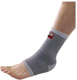 Opis: Elastyczna specjalnie wyprofilowana miękka opaska uciskowa na kostkę. Opaska wykonana z oddychającej mieszanki materiałowej z poczwórnym szwem pomaga utrzymać naturalną ciepłotę ciała oraz poprawia krążenie krwi, co skutkuje zmniejszeniem się bólu, obrzęków oraz zdrętwień, a ponadto umożliwia szybsze leczenie urazów. Parametry techniczne: Zapewnia ochronę i odpowiednie ogrzanie stawu skokowego Stosowana w czasie treningu usztywnia stawy i mięśnie, zapobiegając dalszym jego przeciążeniom i zmniejszając ryzyko kontuzji. Stosowana w leczeniu oraz rehabilitacji po urazach stawu skokowego Zabezpiecza i chroni przed przeciążeniami Specjalny kształt pozwala na dokładne dopasowanie opaski Skład: 30% nylon, 27% spandex, 43% guma Rozmiar L (szerokość góry opaski: 10,5 cm; szerokość dołu opaski: 8,5 cm; długość opaski: 26 cm) Zastosowanie: Wzmacnia staw Zmniejsza obrzęk Przyspiesza leczenie kontuzji Zabezpiecza przed kontuzjami stawu Zalecana jest konsultacja z lekarzem lub rehabilitantem przed zastosowaniem stabilizatora. Dodatkowe informacje: Produkt do użytku domowego