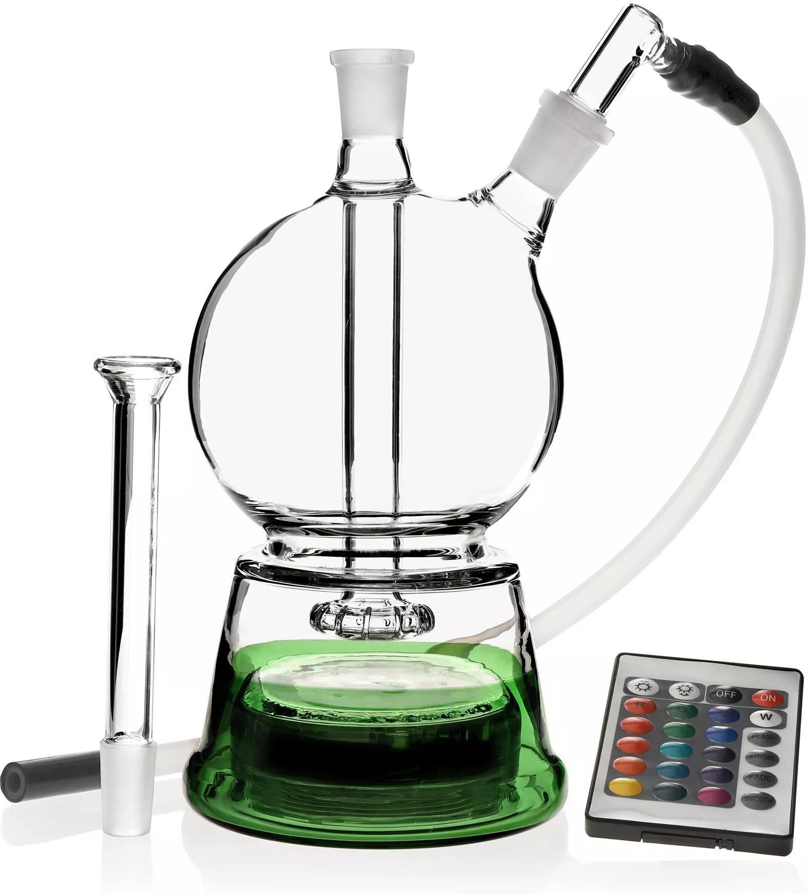 Bomb Globe LED 420VAPE - Bongo z dyfuzorem do waporyzatora szlif 14.5 mm Bongo Bomb Globe LED 420VAPE z wbudowanym dyfuzorem. Wykonane z odpornego na zniszczenia borokrzemowego szkła. Umiejscowione na wysokiej, szklanej podstawie z oświetleniem LED świecącym na różne kolory. Szlif: 14.5 mm