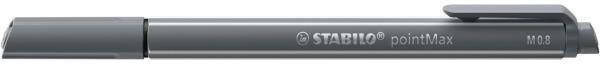 STABILO pointMax - nowa odsłona kultowego już cienkopisu STABILO. Cienkopis posiada obudowę w kolorze tuszu z charakterystycznymi dla STABILO jasnymi pasami, praktyczny klips i nylonową końcówka o grubości 0,8 mm idealną do pisania, rysowania, szkicowania i podkreślania. Stworzony z myślą o uczniach i studentach oraz tych którzy dużo piszą. Idealny do tworzenia map myśli i kolorowych notatek ułatwiających zapamiętywanie. Cienkopis dostępny jest w 24 intensywnych kolorach. Kolor ciemnoszary.
