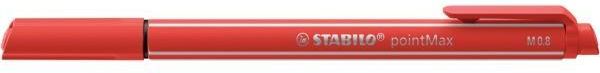 STABILO pointMax - nowa odsłona kultowego już cienkopisu STABILO. Cienkopis posiada obudowę w kolorze tuszu z charakterystycznymi dla STABILO jasnymi pasami, praktyczny klips i nylonową końcówka o grubości 0,8 mm idealną do pisania, rysowania, szkicowania i podkreślania. Stworzony z myślą o uczniach i studentach oraz tych którzy dużo piszą. Idealny do tworzenia map myśli i kolorowych notatek ułatwiających zapamiętywanie. Cienkopis dostępny jest w 24 intensywnych kolorach. Kolor jasnoczerwony.