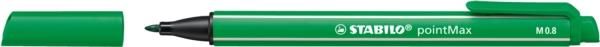 STABILO pointMax - nowa odsłona kultowego już cienkopisu STABILO. Cienkopis posiada obudowę w kolorze tuszu z charakterystycznymi dla STABILO jasnymi pasami, praktyczny klips i nylonową końcówka o grubości 0,8 mm idealną do pisania, rysowania, szkicowania i podkreślania. Stworzony z myślą o uczniach i studentach oraz tych którzy dużo piszą. Idealny do tworzenia map myśli i kolorowych notatek ułatwiających zapamiętywanie. Cienkopis dostępny jest w 24 intensywnych kolorach. Kolor zielony.