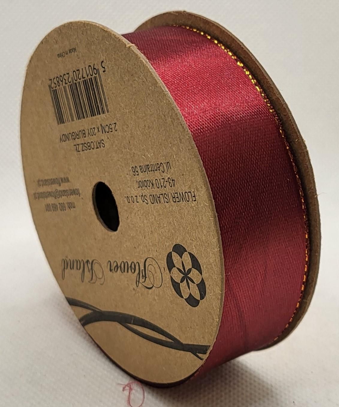 Com Taśma Burgundy Satynowa Obszywana Zł. Nitką 2,5Cm Mysłowice