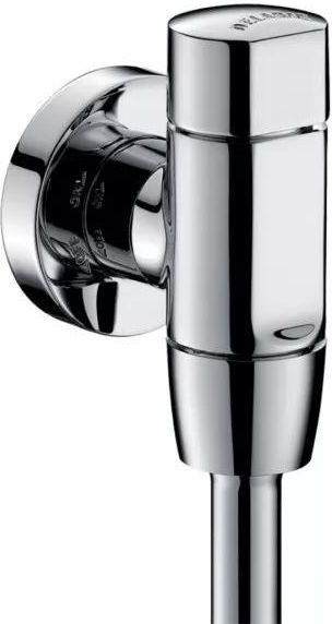 natynkowy zawór czasowy do pisuaru do pisuaru DELABIE FINO instalacja natynkowa delikatne uruchamianie czas wypływu nastawiony na ~3 sekundy wypływ nastawiony na 0,15 l/s przy 3 barach z możliwością regulacji do 0,3 l/s zintegrowany w rozecie innowacyjny system zaworu odcinającego i regulującego wypływ (patent) przystosowany do wody deszczowej zgodny z wymogami normy PN-EN 12541 (poziom hałasu klasa II) korpus z litego, chromowanego mosiądzu Z½" z chromowaną rurką przyłącze kątowe do zasilania podtynkowego produkt przystosowany do osób niepełnosprawnych kolor: chrom