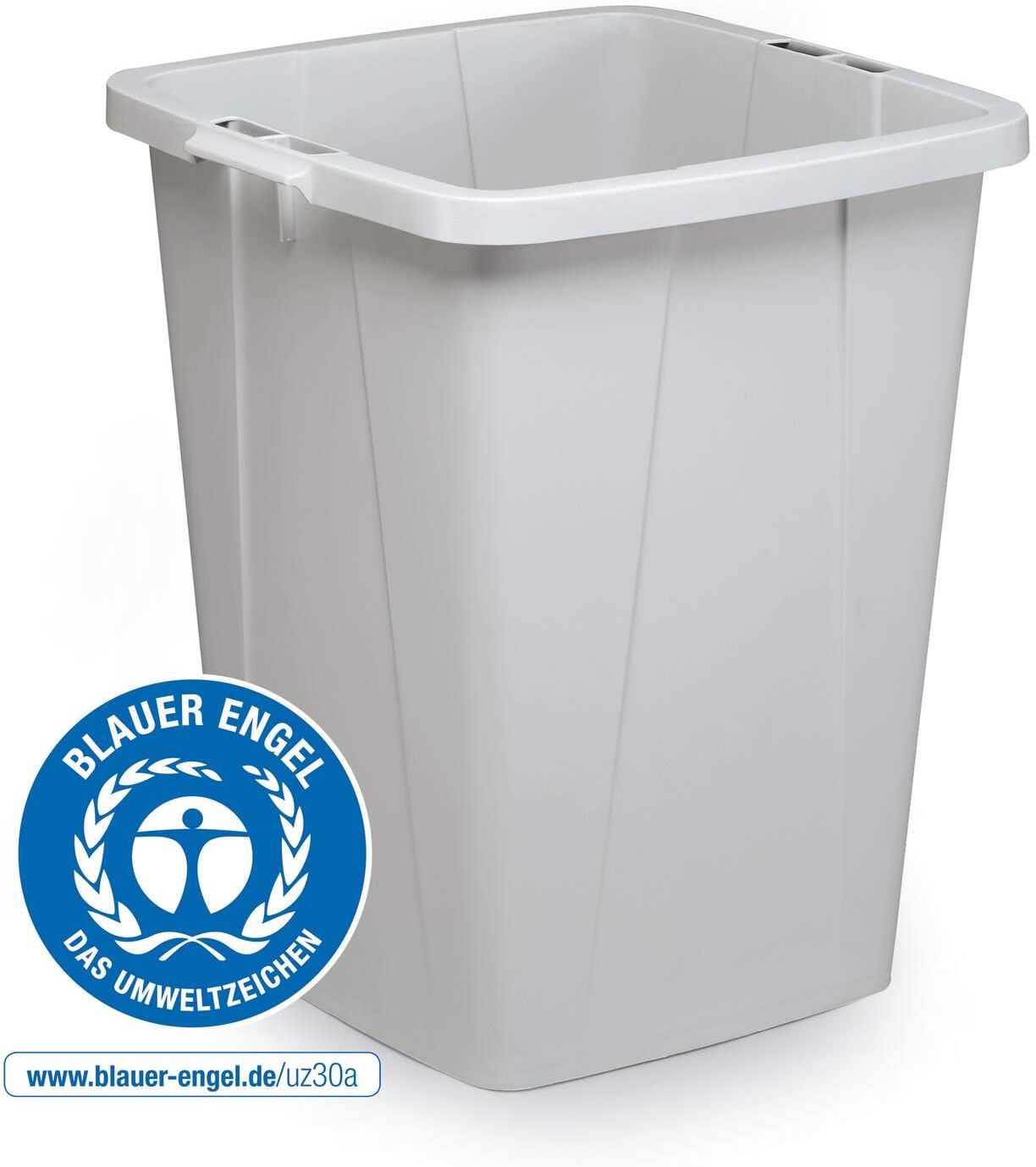 Kosz na śmieci DURABIN® ECO 90L kwadratowy, szary • Prostokątny kontener z tworzywa sztucznego na śmieci bądź surowce wtórne • Nadaje się również do magazynowania lub transportu surowców w przemyśle • Z uchwytami ułatwiającymi przenoszenie • Pasująca pokrywa w rożnych kolorach i modelach dostępna osobno • Wykonany z tworzywa sztucznego powtórnie przetworzonego o jakości odpowiadającej produktom z certyfikatem Blue Angel • Pojemność 90 litrów Cena specjalna za 2 szt. PROMOCJA DO 31 GRUDNIA 2025 umożliwia minimalny zakup 2 szt. pojemników.
