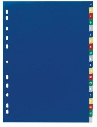 Durable Przekładki A4, kolorowe indeksy Durable Kolorowe przekładki do segregatora z nadrukiem A-Z dodatkowa 1 strona biała opisowa. Format: A4 Ilość stron: 20 Nadruk: od A-Z Wykonane z kolorowego, mocnego i elastycznego polipropylenu. Indeks z nadrukiem w kolorze strony Dziurkowanie: Uniwersalne Wymiary: A4 Rodzaj przekładki: Nadrukowane indeksy Przekładki do segregatorów z kolorowymi znacznikami, z przekładką do opisu zawartości.