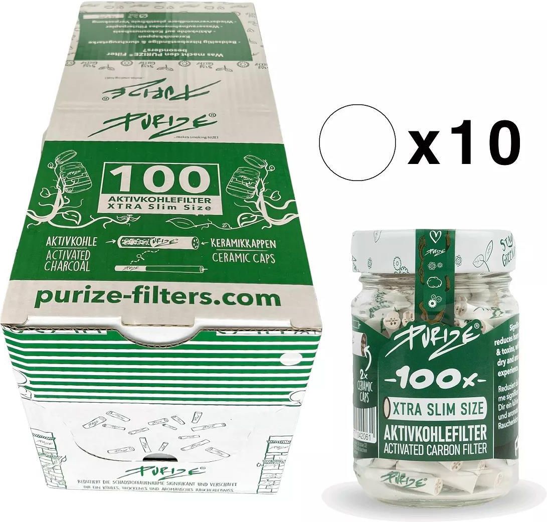 Filtry węglowe Purize XTRA Slim BOX 10 x 100 szt. BIAŁE Filtry do jointów z aktywnym węglem na bazie orzecha kokosowego Purize XTRA Slim. Opakowanie zbiorcze BOX - 10 x szklany słoik 100 szt. Wersja XTRA Slim: średnica filtra: 5.9 mm. Filtry węglowe ograniczają substancje smoliste oraz podkreślają smak suszu.