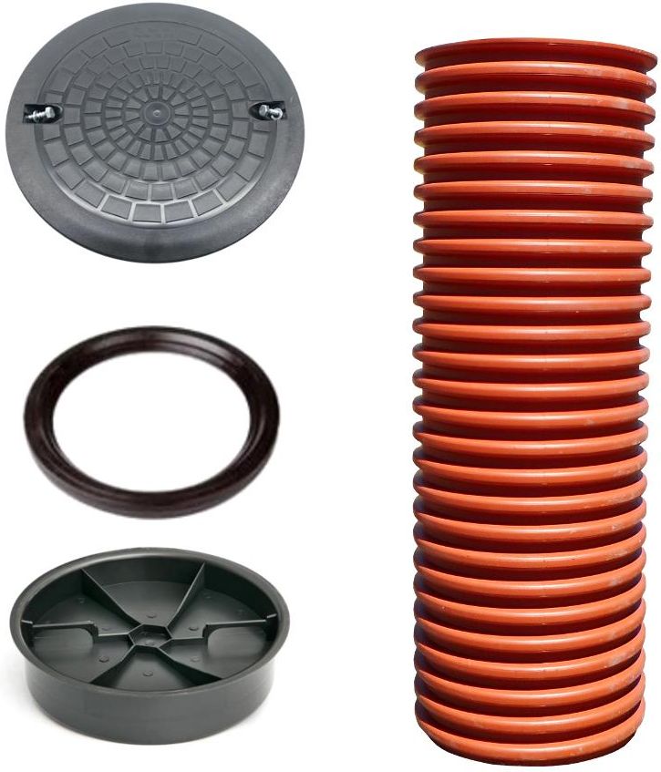 Zestaw zawiera: - Rura trzonowa 315 - 1,5 mb - Pokrywa 315 klasa A15 - Dno 315 z uszczelką Rura trzonowa karbowana wykonana jest z polipropylenu (PP) odpornego na związki chemiczne, uderzenia oraz na niskie i wysokie temperatury. Jest jednym z elementów studzienki rewizyjnej tworzywowej 315 kanalizacyjnej lub drenarskiej. Stanowią również element łączący podstawę z rurą teleskopową. Rura trzonowa wykonana jest metoda wtryskową z polipropylenu PP, może być przycinana za pomocą piły ręcznej lub mechanicznej. - Średnica wewnętrzna rury: 315 mm - Średnica zewnętrzna rury: 355 mm - Długość odcinka: 150 cm Pokrywa wykonana z polipropylenu PP na rurę wznoszącą karbowaną to wysokiej jakości produkt, wykonany z materiału odpornego na działania niekorzystnych warunków zewnętrznych, w tym na działanie promieni UV. Wytrzymuje ciężar nacisku do 1,5 tony - klasa A15. Pokrywy stosuje się jako zwieńczenie studzienek kanalizacyjnych w miejscach przeznaczonych wyłącznie dla ruchu pieszego i rowerzystów. Dno wykonane z polipropylenu PP. Otwory pod rurę drenażową do wycięcia we własnym zakresie. Możliwośc dokupienia uszczelki in-situ do drenażu.