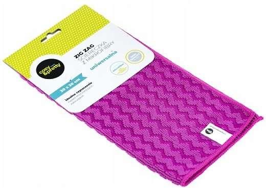 Ściereczka Zig Zag uniwersalna marki Cosy&Pretty. Ścierka wykonana jest z mikrofibry w kolorze różowym. Rozmiar ściereczki 30 cm x 30 cm. Skład: 85% poliester, 15% poliamid. Zig Zag ściereczka z mikrofibry to idealne rozwiązanie do czyszczenia bez smug i plam. Zapewnia wygodne czyszczenie powierzchni nawet tych bardziej zabrudzonych bez konieczności długotrwałego przecierania. Wyjątkowo wytrzymała i trwała przez zastosowanie grubego splotu. Sprawdzona jakość zapewniająca komfort sprzątania, nawet przy bardziej trudnych zabrudzeniach. Ściereczki wykonane z mikrofibry, czyli z włókna syntetycznego cieszą się bardzo dużą popularnością ze względu na swoją skuteczność w usuwaniu kurzu, brudu czy tłuszczu z różnych powierzchni w tym powierzchni bardzo delikatnych. Zaleca się pranie maksymalnie w 60 stopniach, bez wybielaczy i zmiękczaczy do tkanin. Wzór: C&P-0627 Produkt 1 x ściereczka Wymiary 30 cm x 30 cm Skład: 85% poliester, 15% poliamid, 300 g/m2 Materiał mikrofibra