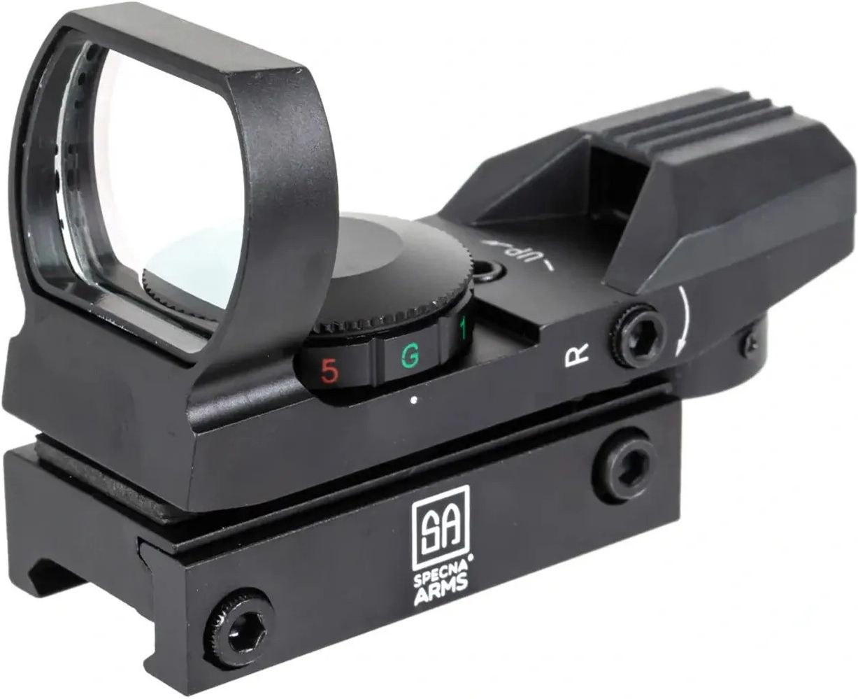 Otwarty celownik kolimatorowy z serii CORE wyposażony w regulowany punkt celowniczy o wielkości 3 MOA, podświetlany na kolor czerwony. Model może być montowany na szynach Weaver/Picatinny/RIS. Sprawdzi się zarówno w replikach ASG, jak i wiatrówkach.