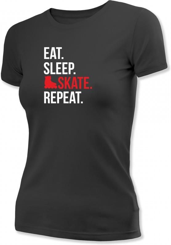 Koszulka krótki rękaw Sportrebel Skate 2 Damska Napis: EAT. SLEP. SKATE. REPEAT. Wysokiej jakości koszulka damska o średniej gramaturze. Modny i wygodny krój. 100% bawełna. Nadruk technologią FLEX.