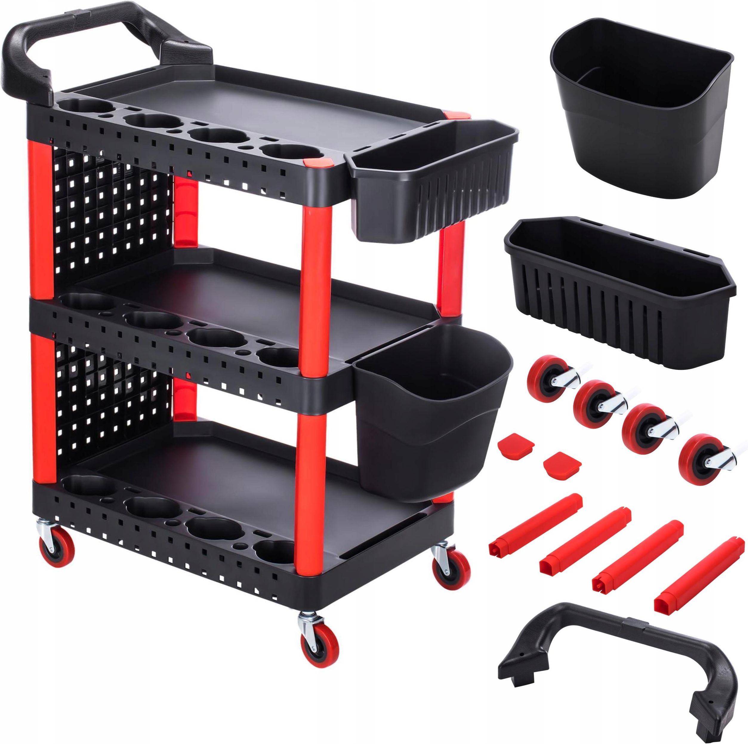 Wózek Warsztatowy Serwisowy na Narzędzia Mocny Szafka 3 Półki KRAFT&DELE KRAFT&DELE Kraft&Dele to polska marka znana z produkcji wysokiej jakości narzędzi elektrycznych i ręcznych, cechujących się doskonałą precyzją wykonania. Od lat firma zdobywa uznanie zarówno na rynku krajowym, jak i międzynarodowym, dzięki nieustannemu dążeniu do doskonałości i innowacyjnym rozwiązaniom. Produkty są nie tylko niezawodne i trwałe, ale także ergonomiczne, co sprawia, że są doskonałym wyborem zarówno dla profesjonalistów, jak i dla hobbystów. Dzięki zaangażowaniu w jakość i ciągłemu rozwojowi technologicznemu, Kraft&Dele zyskało reputację solidnego partnera w dziedzinie narzędzi, gotowego sprostać nawet najbardziej wymagającym potrzebom klientów. Wózek Warsztatowy Serwisowy na Narzędzia Mocny Szafka 3 Półki KRAFT&DELE Wózek wielofunkcyjny KD1076 marki Kraft&Dele to nowoczesne i funkcjonalne rozwiązanie, które doskonale sprawdzi się w każdym warsztacie, serwisie i garażu. Jego solidna konstrukcja z najwyższej jakości tworzywa sztucznego zapewnia trwałość i wytrzymałość nawet w najbardziej wymagających warunkach. Odkryj idealne rozwiązanie do organizacji pracy w warsztacie, garażu lub domowym kąciku majsterkowicza - Wózek Warsztatowy / Szafka Narzędziowa z 3 półkami. Zapewnij sobie łatwy dostęp do narzędzi i akcesoriów bez zbędnego bałaganu, zwiększając efektywność swojej pracy. Chcesz uporządkować lub potrzebujesz pomocy w transporcie różnych przedmiotów? W takim razie wielofunkcyjny wózek Kraft&Dele jest właśnie dla Ciebie! Jest to idealny dodatek do każdego warsztatu rzemieślniczego, warsztatu samochodowego, warsztatu hobbystycznego, gospodarstwa domowego lub firmy. Wielofunkcyjny wózek półkowy może być używany w warsztacie, ale nadaje się również do gastronomii jako wózek do serwowania. Dzięki dużej nośności wózek może być również używany jako mobilny schowek na ciężkie narzędzia. W przegródkach można łatwo przechowywać narzędzia w zasięgu ręki. 4 kółka skrętne wykonane z tworzywa sztucznego zapewniają dużą mobilność wózka warsztatowego. Uchwyt, który można zamontować po obu stronach, ułatwia przenoszenie, ciągnięcie i manewrowanie. Oznacza to, że wózek znajdzie miejsce w każdym warsztacie, gospodarstwie domowym lub firmie. Dzięki trzem przestronnym półkom, wózek umożliwia efektywne przechowywanie narzędzi i akcesoriów, a dedykowane miejsce na smary i chemię czyszczącą sprawia, że jest to praktyczny wybór dla każdego profesjonalisty oraz hobbysty. Wózek został zaprojektowany z myślą o maksymalnej wszechstronności, co potwierdza możliwość dowolnej konfiguracji ścianki. Wykorzystanie czterech skrętnych kółek gwarantuje płynność manewrowania, nawet przy pełnym obciążeniu, co czyni go niezwykle komfortowym w codziennym użytkowaniu. Wózek KD1076 to niezawodne narzędzie, które podniesie efektywność pracy i porządek w każdym miejscu, w którym będzie używany. Maksymalne bezpieczeństwo Wózek ma duże półki z głębokimi bokami, które zapobiegają spadaniu przedmiotów, takich jak narzędzia, a nawet maszyny. Wygodny i praktyczny Dzięki praktycznemu rozmiarowi, wózek warsztatowy Kraft&Dele zmieści się w każdym małym kącie. Trzy duże półki oferują mnóstwo miejsca na wszelkiego rodzaju narzędzia i materiały. 2 Pojemniki mocowane na półkach zapewnią bezpieczeństwo przechowywania małych i drobnych przedmiotów Skład zestawu Wózek składany KD1076 Oryginale opakowanie Instrukcja w języku polskim Dlaczego warto wybrać nas? Doświadczenie: Twoje zaufanie jest dla nas największym wyróżnieniem. Wytrzymałość i niezawodność: Nasze elektronarzędzia to synonim trwałości. Konkurencyjne ceny: Wysoka jakość w dobrej cenie ? U nas to standard! Szeroka oferta: Wiele artykułów w ofercie, by sprostać Twoim potrzebom. Priorytetem jest Twoje zadowolenie: Dostarczamy produkty, które spełniają oczekiwania nawet najbardziej wymagających użytkowników. Nieustannie poszerzamy naszą ofertę, by oferować tylko najlepsze rozwiązania. Serwis i wsparcie: W naszym zakresie znajdziesz pełne wsparcie - zarówno gwarancyjne, jak i pogwarancyjne, a także dostęp do bogatej oferty części zamiennych. Zapraszamy do zakupów! Wybierz jakość i doświadczenie, które zapewnią sukces Twoim działaniom! Stan: Nowy Marka: Kraft&Dele Waga produktu z opakowaniem jednostkowym: 10 Kod producenta: KD1076 Waga: 10 EAN: 5903957013480