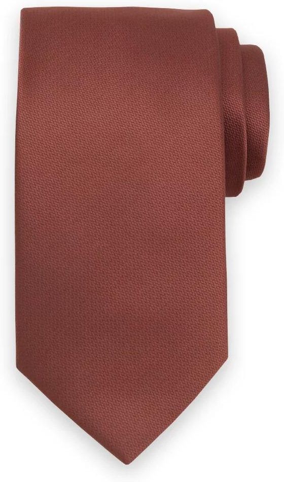 Klasyczny krawat z microfibry Krawat jest istotnym elementem stylu, za pomocą którego elegancko ubrany mężczyzna może wnieść do swojej garderoby nieco koloru. Powinien być dobierany do karnacji, garnituru oraz temperamentu mężczyzny. Microfibra to tkanina powstała z bardzo cienkich włókien poliamidowych i poliestrowych. Kształt tego włókna sprawia, że dzięki odpowiednim splotom uzyskujemy tkaninę bardzo wytrzymałą. Imituje jedwab, lecz jest tkaniną zdecydowanie lżejszą. Można ją poddawać czyszczeniu chemicznemu i odplamianiu. Dodatkowe informacje Standardowa długość 150 cm 8 cm szerokości w dużym czubie 100% microfibra o gęstym splocie Delikatny połysk Klasyczny modny krój Można czyścić chemicznie