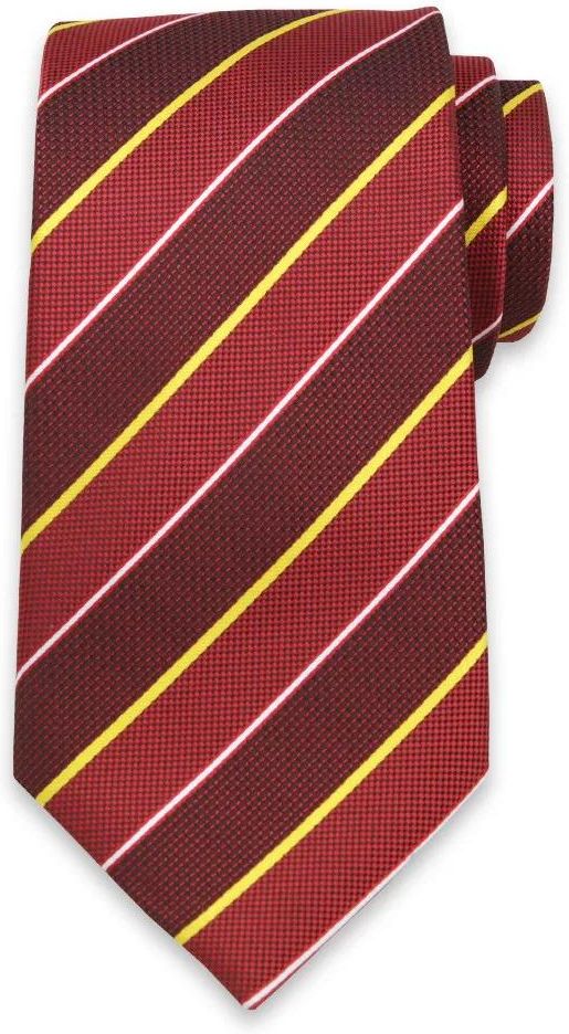 Klasyczny krawat z microfibry Krawat jest istotnym elementem stylu, za pomocą którego elegancko ubrany mężczyzna może wnieść do swojej garderoby nieco koloru. Powinien być dobierany do karnacji, garnituru oraz temperamentu mężczyzny. Microfibra to tkanina powstała z bardzo cienkich włókien poliamidowych i poliestrowych. Kształt tego włókna sprawia, że dzięki odpowiednim splotom uzyskujemy tkaninę bardzo wytrzymałą. Imituje jedwab, lecz jest tkaniną zdecydowanie lżejszą. Można ją poddawać czyszczeniu chemicznemu i odplamianiu. Dodatkowe informacje Standardowa długość 150 cm 8 cm szerokości w dużym czubie 100% microfibra o gęstym splocie Delikatny połysk Klasyczny modny krój Można czyścić chemicznie