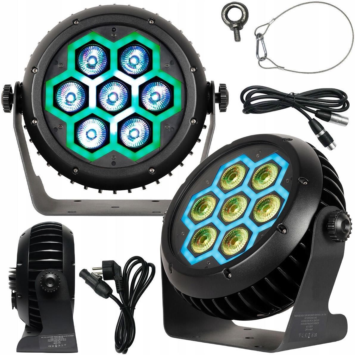 Reflektor sceniczny efekt świetlny oświetlenie zewnętrzne - LIGHT4ME FRAME PAR IP65 7x10W LED RGBW Profesjonalne oświetlenie sceniczne na każdą okazję LIGHT4ME FRAME PAR IP65 7x10W LED RGBW to zaawansowany reflektor sceniczny, który zaspokoi potrzeby nawet najbardziej wymagających użytkowników. Dzięki wąskiemu kątowi świecenia i pełnozakresowemu dimmerowi, umożliwia precyzyjne dostosowanie natężenia światła do każdej sytuacji. Efektowny stroboskop z regulowaną prędkością, statyczne barwy oraz makra barw zwiększają możliwości tworzenia pokazu świetlnego. Dodatkowo, funkcja Pixel Control pozwala na indywidualne sterowanie diodami LED, co daje prawie nieskończone możliwości w tworzeniu efektów wizualnych ✅. W zestawie ✅reflektor par; ✅przewód sygnałowy DMX; ✅przewód zasilający; ✅uchwyt montażowy; ✅linka bezpieczeństwa; ✅instrukcja obsługi. Doskonały reflektor IP65 do zastosowań zewnętrznych Dzięki klasie ochrony IP65, reflektor LIGHT4ME FRAME PAR IP65 jest odporny na warunki atmosferyczne, co czyni go idealnym wyborem do zastosowań zewnętrznych. Może być z powodzeniem używany na koncertach plenerowych, festiwalach, w parkach rozrywki oraz podczas imprez okolicznościowych na świeżym powietrzu ✅. Wysokiej jakości diody LED RGBW i dodatkowe diody RGB SMD LED zapewniają jasne i wyraziste światło, które doskonale sprawdzi się w każdych warunkach. Reflektor jest również wyposażony w uchwyt montażowy, co ułatwia jego instalację na różnych powierzchniach. Doskonały wybór dla profesjonalistów Urządzenie jest szczególnie przydatne dla profesjonalistów zajmujących się oświetleniem scenicznym. Technicy sceniczni, operatorzy oświetlenia, organizatorzy wydarzeń oraz firmy eventowe z pewnością docenią jego niezawodność i różnorodność zastosowań. Dzięki opcji sterowania w trybach auto, sound, master/slave oraz DMX, reflektor umożliwia swobodną i pełną kontrolę nad swoim działaniem, co jest kluczowe podczas realizacji skomplikowanych pokazów świetlnych. Dodatkowo, wyświetlenie bieżącej temperatury urządzenia zwiększa bezpieczeństwo pracy z reflektorem, a opcja wyłączenia wyświetlacza podnosi poziom komfortu użytkowania oraz estetykę urządzenia ✅. Niezawodność, łatwość obsługi i świetna cena LIGHT4ME FRAME PAR IP65 jest nie tylko wydajny, ale również prosty w obsłudze. Posiada intuicyjny panel sterowania z czterema przyciskami oraz wyświetlacz LED, który umożliwia szybkie i bezproblemowe ustawienie parametrów pracy. Zainstalowane w urządzeniu złącza zasilania truecon oraz złącza danych DMX zapewniają pewne i bezpieczne połączenia. Dzięki wejściu i wyjściu zasilania można przekazywać napięcie zasilające bezpośrednio z jednego urządzenia do drugiego, minimalizując okablowanie ✅. Do zestawu dołączono również linkę bezpieczeństwa, która skutczenie zabezpieczy Twoje urządzenie przed upadkiem podczas pracy w zawieszeniu. Dzięki kompaktowym wymiarom i niskiej wadze, transport i montaż reflektora nie sprawiają żadnych problemów. LIGHT4ME FRAME PAR IP65 to konkurencyjny cenowo, wykonany z najlepszych materiałów reflektor estradowy, który pozwoli na przygotowanie spektakularnego pokazu świetlnego! Dane techniczne Producent: LIGHT4ME Model: FRAME PAR IP65 7x10W LED RGBW Dimmer: pełnozakresowy (0-100%) Stroboskop: 1-25 błysków/sek., regulowana prędkość Wymiary opakowania: 38 x 23 x 33,5 cm Waga netto: 5,22 kg Bezpiecznik: 0,5A Źródło światła: 7x10W RGBW LED (4w1) + 39x0,2W RGB SMD LED Zasilanie: AC 90-260V, 50/60 Hz Zużycie energii: 90W Wymiary: 29,9 x 15,5 x 27,9 cm Natężenie oświetlenia: Barwa czerwona (R): 2559lx @ 1m, 281lx @ 3m, 105lx @ 5m Barwa zielona (G): 2285lx @ 1m, 261lx @ 3m, 92lx @ 5m Barwa niebieska (B): 2952lx @ 1m, 325lx @ 3m, 116lx @ 5m Barwa biała (W): 2979lx @ 1m, 344lx @ 3m, 131lx @ 5m Barwy RGBW: 10635lx @ 1m, 1310lx @ 3m, 443lx @ 5m