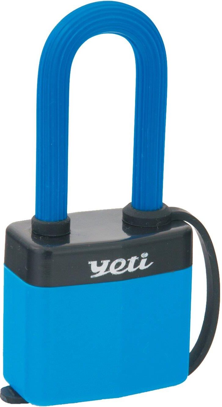 Kłódka lamelowa zatrzaskowa z wydłużonym pałąkiem KL 41Y, z osłoną PCV, niebieska, marki Yeti.Uniwersalna pałąkowa kłódka firmy Lob S.A. sygnowana logo Yeti z lamelową konstrukcją korpusu, pokryta w całości tworzywem sztucznym.Lamelowa konstrukcja zwiększa wytrzymałość kłódki na zniszczenie w wyniku uderzeń, a wykorzystanie PCV pozwala ograniczyć ilość uszkodzeń w postaci otarć i zadrapań powierzchni, będących w bezpośrednim kontakcie z korpusem i pałąkiem kłódki po jej zamknięciu. Osłona zabezpiecza również przed działaniem wilgoci i innych niekorzystnych warunków atmosferycznych.Szerokość korpusu: 46 mm, średnica pałąka: 8 mm, wysokość pałąka: 58 mm.Wysoka jakość wykonania, połączona z dużą funkcjonalnością zapewniają wygodną i długotrwałą eksploatację.W komplecie znajdują się 3 klucze. Gwarancja producenta - 12 miesięcy.