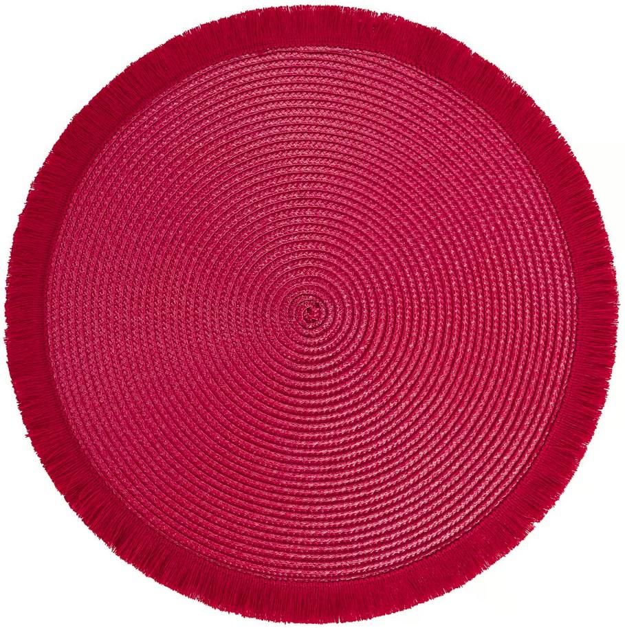 Mata na stół okrągła 38 cm Hawai czerwona Czerwona, okrągła podkładka stołowa Hawai to doskonałe uzupełnienie wystroju stołu. Bardzo modna w ostatnim czasie forma dekoracji wnętrz. Pasuje do aranżacji w stylu nowoczesnym jak i tradycyjnym. Matę można wykorzystać nie tylko na stół, ale także w innych miejscach: komodach, półkach itp. Mata Hawai wykonana została z tworzywa sztucznego. Jej obrzeże zdobią frędzelki. Zostań projektantem swojego wnętrza i zaprojektuj unikalną kombinację kolorystyczną dla swojej nowej zastawy. Mieszaj i dopasowuj kolory według własnych pomysłów! Dzięki bogatej palecie barw, możesz tworzyć niezwykle kolorowe i efektowne dekoracje. Szerokość (cm): 38 Długość/głębokość (cm): 38 Waga (kg): 0,09 Kolor: czerwony Kształt: Okrągły Materiał wykonania: Tworzywo sztuczne nr katalogowy (316683)