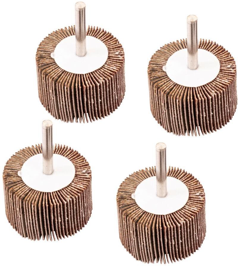 Talerze lamelowe 4 części Ø50x40 mm Zestaw czterech talerzy lamelowych do obróbki przy pomocy wkrętarki. Tarcze lamelowe do wkrętarki – do obrabiania, czyszczenia i polerowania małych elementów, takich jak np. rury, otwory, matryce do odciskania i metalowe modele. Mocowanie do uchwytu szczękowego we wkrętarce. Zestaw zawiera cztery modele talerzy lamelowych o różnej ziarnistości: K40, K80, K120 i K240. Specyfikacja techniczna Gwarancja (w miesiącach): 12 m. Ziarnistość: 40, 80, 120 & 240 Wymiary: Ø50 x 40 mm Średnica: Ø50 mm