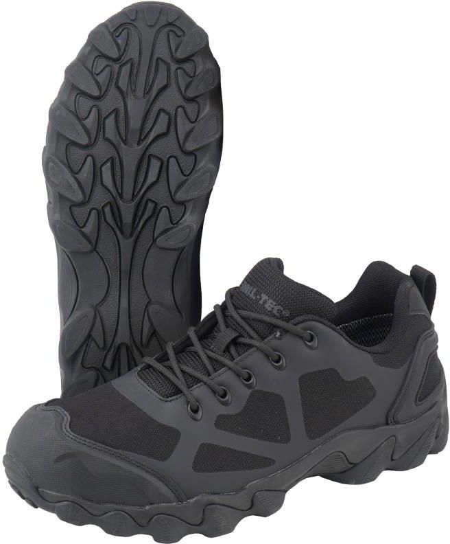Buty taktyczne od firmy Mil-Tec, ktre wyrnia niska waga. Innowacyjne buty to poczenie obuwia sportowego z militarnym, ktre zapewniaj skuteczn ochron bdc wygodnym dla uytkownika dziki zastosowaniu nowoczesnych technologii. W butach zastosowano podeszw z bienikiem Wolf Teeth, ktry gwarantuje stabilno w trudnym terenie i amortyzacj w trakcie biegu lub skokw. Buty w wersji Low z nisk cholewk to dobry wybr do codziennego uytkowania i lekkie trasy trekingowe. Cechy: - Niewielka waga, przy zachowaniu wysokiej odpornoci - Absorbujca wstrzsy podeszwa z antypolizgowym, samoczyszczcym bienikiem Wolf Teeth - Cholewka z wytrzymaego nylonu wzmacnianego poliuretanem - Pprzepuszczalna membrana Dintex®, blokuje przenikanie wody od zewntrz pozwalajc jednoczenie na swobodny przepyw pary wodnej z wntrza buta - Wzmocnienia na czubku i picie z tworzywa TPU, zabezpieczone szwami - Wkadka antybakteryjna - Wewntrzna cz podeszwy z pianki EVA - Mikkie wypenienie typu Strobel, otulajce stop wewntrz buta - Wycika z mikkiej, oddychajcej siatki nylonowej - Szwy podklejane tam uszczelniajc - Powierzchnia buta impregnowana, z powok hydrofobow - Jzyk typu miechowego - System szybkiego sznurowania Speed Lace Dane techniczne: - Materia: &nbsp- Cholewka: Nylon, poliuretan &nbsp- Wycika: Nylon, Dintex® &nbsp- Wzmocnienia na czubku i picie: guma TPU &nbsp- Podeszwa zewntrzna: Poliuretan, TPU &nbsp- Podeszwa wewntrzna: pianka EVA &nbsp- Sznurowada: Poliester - Waga (1 but, rozmiar 42): 427 g - Kolor: Czarny