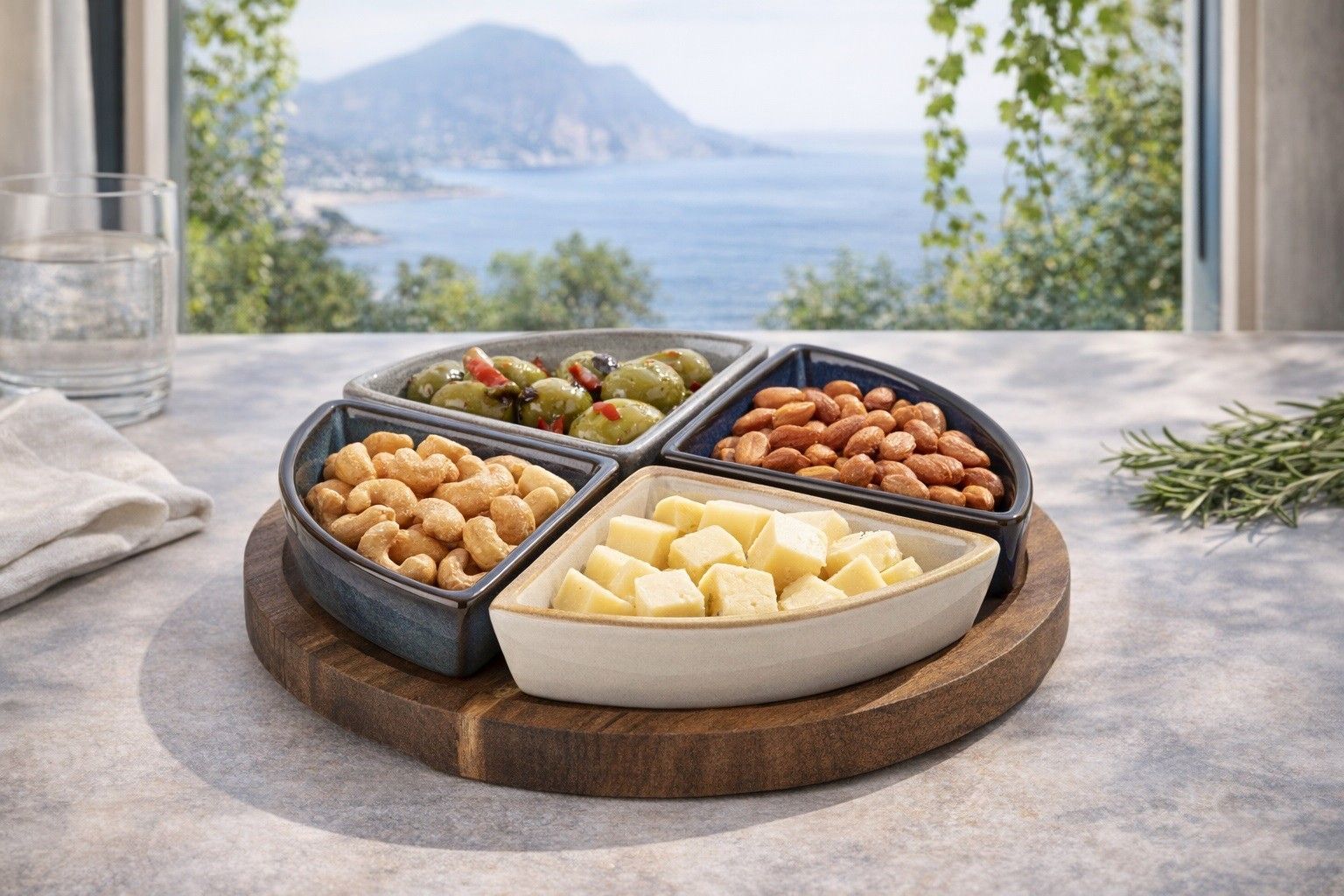 Deska do serwowania z 4 miskami MODERN KITCHEN Allesken, porcelana i drewno akacjowe Jeśli lubisz serwować przekąski w efektowny i dopracowany sposób, zestaw MODERN KITCHEN marki Allesken będzie doskonałym wyborem. To designerska propozycja, która łączy naturalne piękno drewna akacjowego z …