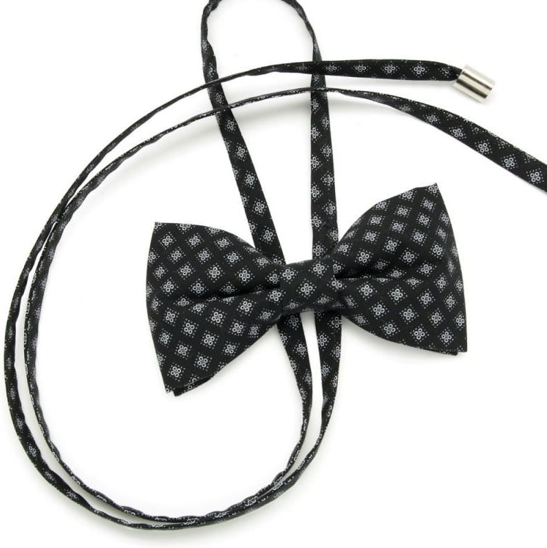 Mucha damska Willsoor Zestaw składający się z muchy gotowej opakowanej w kartonowe pudełko. Muchę swobodnie przesuwa się po paskach co sprawia, że można ją nosić na wiele sposobów: na szyi jako ozdoba spełniająca rolę naszyjnika, pod szyją jako tradycyjną muszkę, we włosach lub jako pasek. Elegancko zapakowany zestaw jest również idealnym pomysłem na prezent. - Tkanina: 100% bawełny - Kolor muchy: czarna w biały kropkowany wzór - Długość paska: 70cm - Wymiary: 12cm x 5,5cm - Opakowanie: kartonowe pudełko Willsoor - Producent: Willsoor