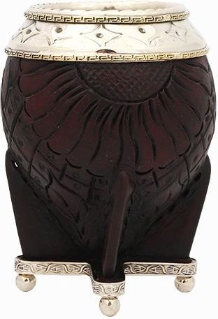 Torpedo Imperial - ekskluzywna tykwa obleczona w naturalną czarną skórę, z precyzyjnie rzeźbioną wirolą i podstawką wykonaną z alpaki. Naczynie zostało ręcznie wykonane w Argentynie przez utalentowanych rzemieślników z wyselekcjonowanego, dojrzałego owocu tykwy o wyjątkowo grubych ściankach. …