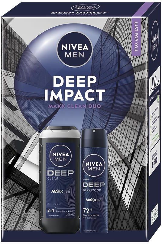 NIVEA MEN Deep Impact, , Zestawy kosmetyków dla mężczyzn, Wybierz zestaw kosmetyków i spraw radość sobie lub swoim bliskim NIVEA MEN. Zawartość zestawu: NIVEA MEN Deep żel pod prysznic dla mężczyzn 250 ml NIVEA MEN Deep antyperspirant w sprayu dla mężczyzn 150 ml Właściwości: zestaw produktów …