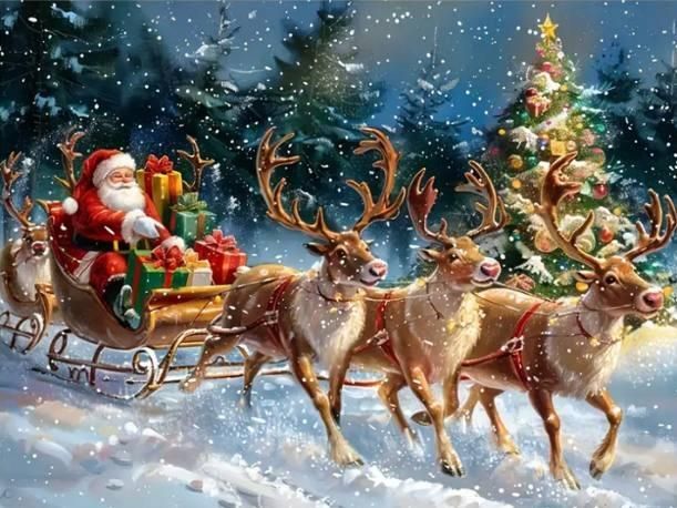 Zdjęcie Norimpex Diamentowa Mozaika Mikołaj W Saniach I Renifer 30X40Cm Kreatywne Diamenty NO2003019 - Mysłowice