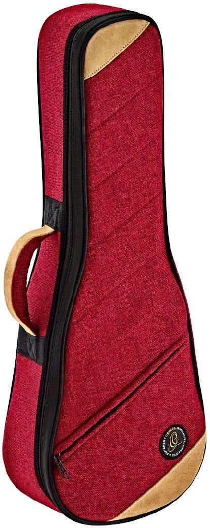 TRAVEL IN STYLE WITH HARD-CASE LIKE PROTECTION WITH SIGNIFICANTLY LESS WEIGHT!Ortega premium SOFT CASES are made with a canvas/cotton surface and real suede leather inlays. The 22 mm (0.86") soft sponge padding is supported by a 5 mm (0.20") hardened PE plastic frame. A plush black velvet material interior includes a neck brace with Velcro safety straps. The exterior features heavy duty zippers, comfortable, adjustable shoulder straps, a suede leather covered handle and two front compartments (one for ukulele sizes). Color: Bordeaux Wine