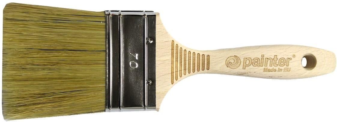 PAINTER Pędzel Malarski Płaski PRO LINE H01 80mm PRO0966 Pędzel przeznaczony do wszystkich rodzajów farb i lakierów. Został wykonany z najwyższej jakości szczeciny naturalnej 90% tops, trzykrotnie gotowanej. Naturalna ergonomiczna rękojeść z drewna bukowego, zapewniająca wysoki komfort pracy. …