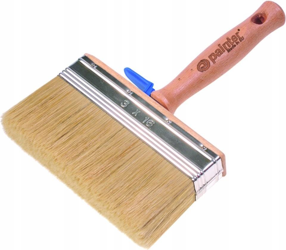 PAINTER Pędzel Malarski TAPETOWY T04 Pro Line 70mm TAP0425 Szeroki pędzel doskonale sprawdza się jako uniwersalne narzędzie malarskie podczas gruntowania i malowania dużych powierzchni. Przeznaczony do wszystkich rodzajów farb i lakierów, klejów do tapet. Trzonek i korpus wykonane z wysokogatunkowego drewna bukowego, lakierowane, posiada zawieszkę na wiaderko. szerokość: 70mm grubość: 30mm rozmiar włókna: 57mm kształt: podłużny materiał uchwytu: drewno
