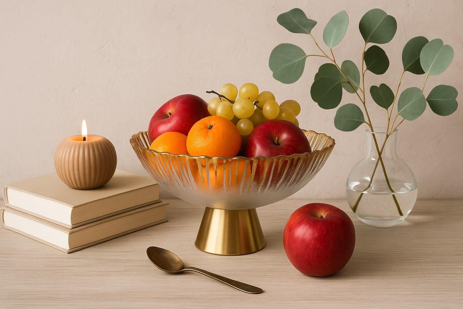Ta wyjątkowa patera szklana na nodze to połączenie subtelnej formy i luksusowych detali. Wykonana z grubego, transparentnego szkła z dekoracyjnymi żłobieniami i złotymi akcentami na krawędzi, prezentuje się niezwykle efektownie. Stabilna podstawa z metalu w kolorze złotym nadaje jej eleganckiego charakteru, a jednocześnie zapewnia trwałość i solidność. Cechy produktu Materiał: szkło i metal Kolor: przezroczysty ze złotymi zdobieniami, złota podstawa Styl: glamour, nowoczesny, klasyczny Zastosowanie: do serwowania owoców, ciast, ciasteczek, przekąsek, a także jako dekoracyjny element stołu Zastosowanie i aranżacje Patera doskonale sprawdzi się podczas rodzinnych spotkań, świątecznych przyjęć czy eleganckich kolacji. Może być wykorzystywana nie tylko do serwowania słodkości, ale również jako ozdobna patera na owoce czy stylowa misa dekoracyjna. Dzięki złotym akcentom świetnie komponuje się z aranżacjami w stylu glamour i nowoczesnym. Dlaczego warto? podkreśla elegancję nakrycia stołu, stanowi praktyczny i estetyczny dodatek do wnętrza, świetny pomysł na prezent – elegancki i ponadczasowy. Zdjęcia aranżacyjne mają charakter poglądowy. Prezentowana aranżacja może zawierać elementy dekoracyjne niewchodzące w skład zestawu. Szczegóły dotyczące zawartości znajdują się w opisie produktu.