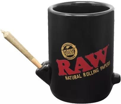 RAW Wake-Up and Bake-Up Coffee Mug- Kubek z otworem na jointa Unikatowy kubek RAW z otworem na jointa umieszcznym z boku kubka. Wykonany z wysokiej jakości ceramiki. Prosty, ale jakże przyjemny patent, który umili niejedno popołunie. Kawa i joint w kubku RAW Wake-Up and Bake-Up? Czemu nie!