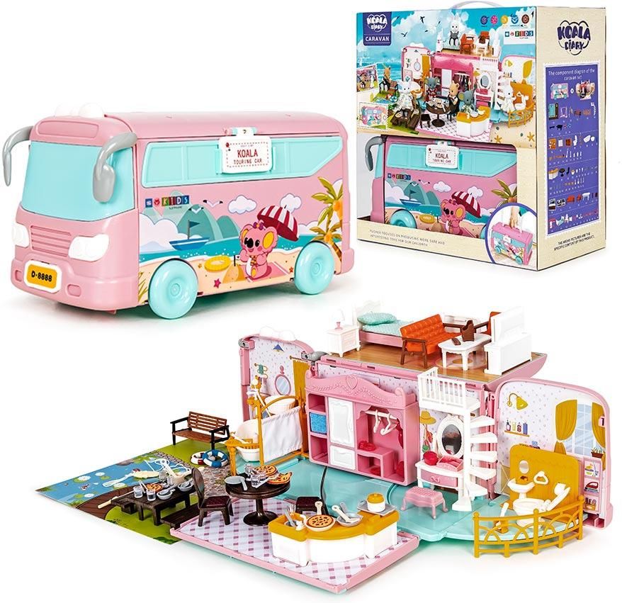 model: Sapphire SK-71 kolor: różowy aż 90 elementów w zestawie! składana konstrukcja umożliwia utrzymanie porządku po skończonej zabawie, oraz łatwy transport zabawki praktyczny uchwyt do przenoszenia osiem stref do zabawy - w tym między innymi jadalnia, kuchnia, garderoba dbałość o detale wysokiej jakości tworzywo ⭐⭐⭐⭐⭐ zapakowany w kolorowy karton - idealny pomysł na prezent WAŻNE Oferowany zestaw nie zawiera lalek-zwierzątek (widoczne lalki służą wyłącznie celom demonstracyjnym). WYMIARY: Kamper: Długość: 30 cm Szerokość: 15,5 cm Wysokość: 17 cm Pudełko: Szerokość: 33 cm Głębokość: 16 cm Wysokość: 34 cm