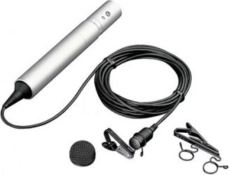 Sony ECM-55B Lavalier Electret Condenser microphone omni-directional XLR 3-pin connector Dostarczany w zestawie moduł zasilający z wewnętrzną baterią i męski wtyk do zasilania fantomowego 12–48 V Czarna obudowa mikrofonu i przewód Dane techniczne Sekcja audio: Typ kapsuły - Elektretowy, …