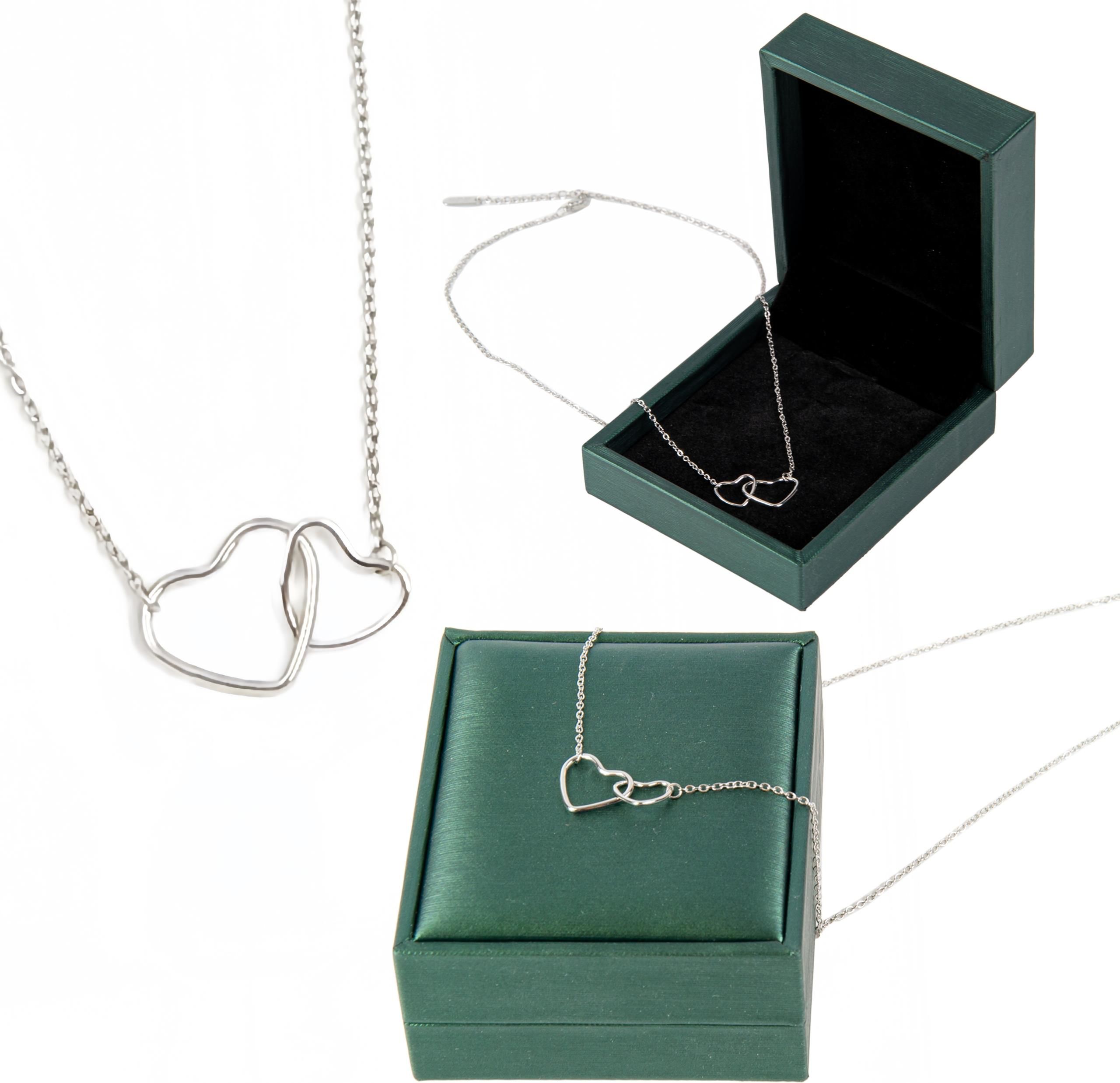 SREBRNY ŁAŃCUSZEK DWA SERCA SERDUSZKA STAL CHIRURGICZNA + SZKATUŁKA Mysłowice