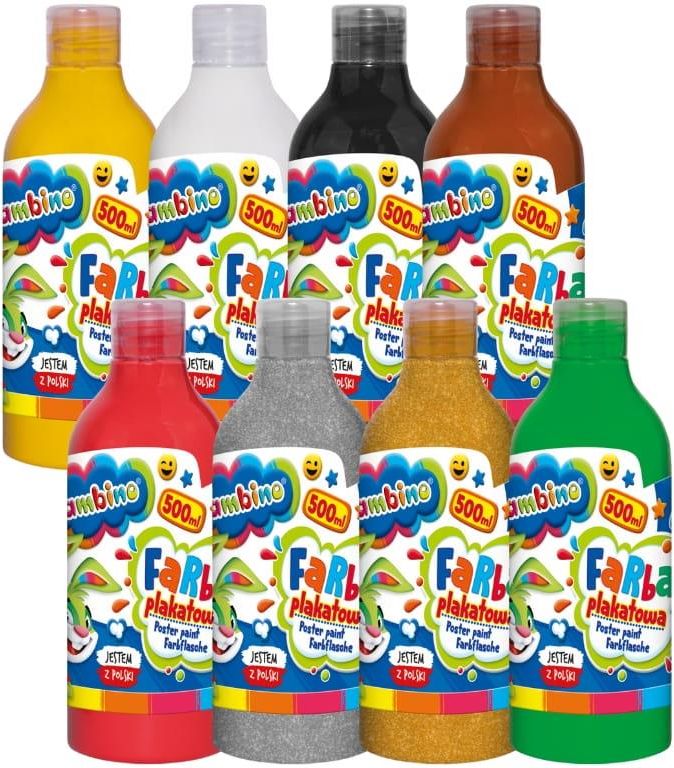 St. Majewski Bambino Farby Plakatowe Szkolne Zestaw 8 Kolorów 500ml W Butelce Mysłowice